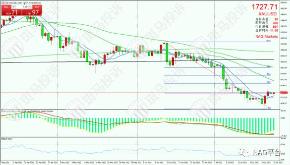 黄金方面,金价周五小幅上涨,收于1727.08美元/盎司,因10年期美债收益率大幅下行,且欧洲央行加息,使美元承压,在经济风险增大的情况下,黄金避险需求大增,使金价受到提振。