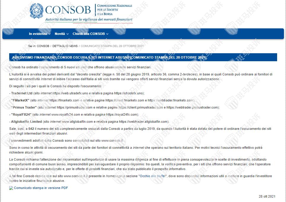 •Primus Trader(网站https://primustrader.com和相关页面https://client.primustrader.com和https://webtrader.primustrader.com);