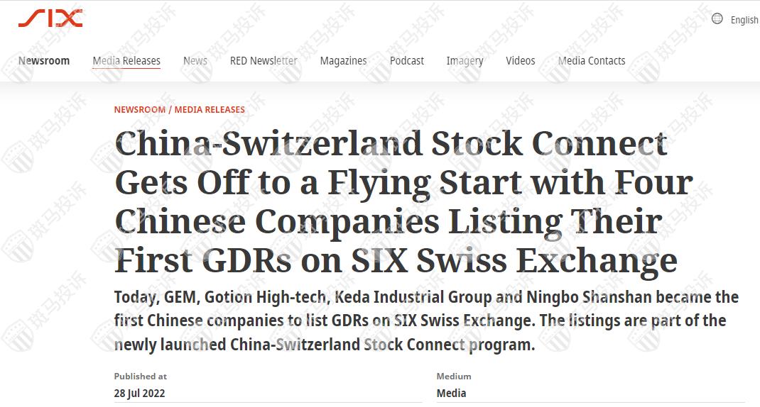 GEM、Gotion High-tech、Keda Industrial Group和Ningbo Shanshan成为首批在瑞士证券交易所上市的中国公司的GDR。这些上市是新推出的中瑞股票通计划的一部分。