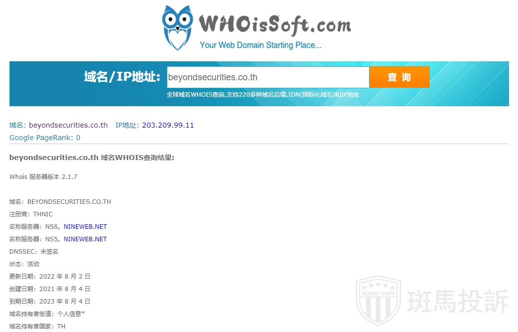 Beyond Securities平台服务器有2台,在泰国。