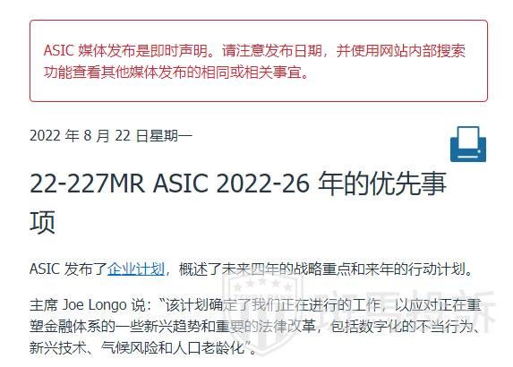 ASIC主席Joe Longo表示:“该计划确定了我们正在进行的工作,以应对正在重塑金融体系的一系列新兴趋势和重要的法律改革,包括数字化的不当行为、新兴技术、气候风险和人口老龄化。”