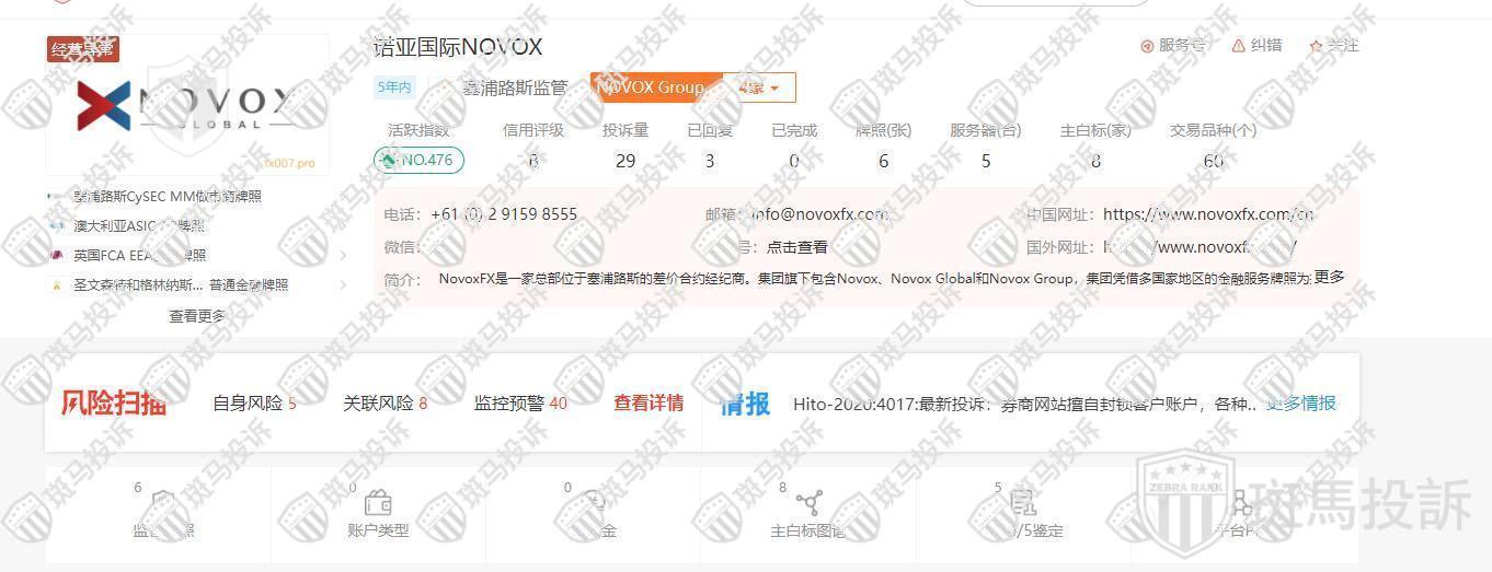 根据NOVOX诺亚国际介绍,其接受塞浦路斯圣文森特等多国监管,实际上呢就是都是超限经营的牌照,没有任何监管外汇交易的资质,滥竽充数,欺骗不懂的投资者!