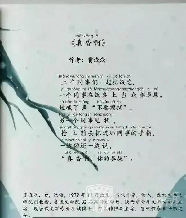 9月3日,河南省文学院专业作家赵瑜从权威渠道获得信息,《朗朗》可能是贾浅浅写的,而《雪天》《真香啊》《黄瓜,不仅仅是吃的》,并非贾浅浅创作。此前,贾浅浅暂未就此事做出回应。