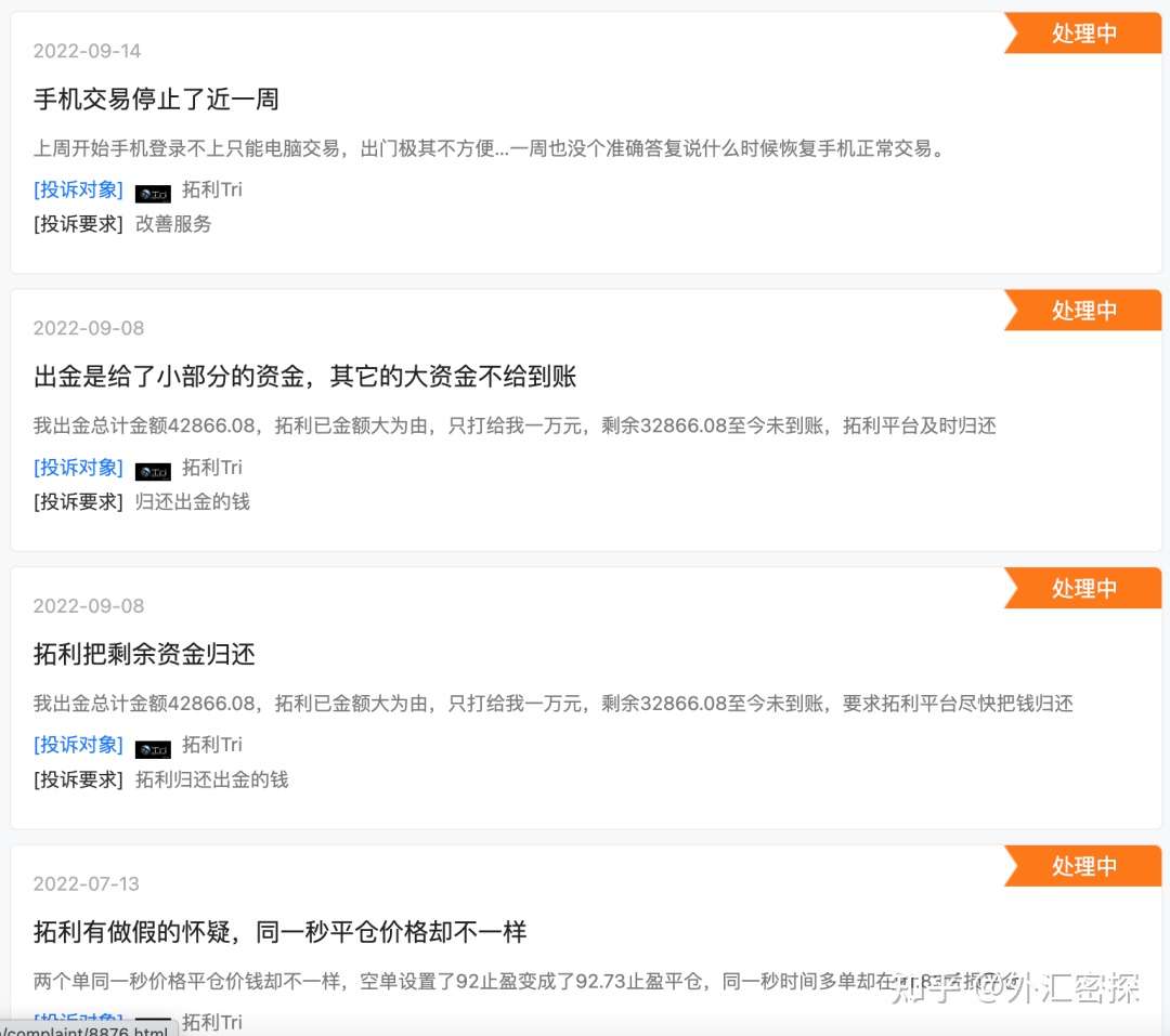 半年时间过去了,拓利Tri并没有解决这些问题,并且还在不断缩减规模,暂停各种服务,希望广大投资者也不要再进去踩坑,很明显这家平台已经没有继续经营下去的动力和实力。这并不是外汇密探危言耸听,我们从长达半年的时间,从各种问题上看,都显示出拓利Tri遇到了难以解决的问题和经营上出现的问题,如果还有投资者在这家平台投资,那也只能说是拿鸡蛋碰石头。
