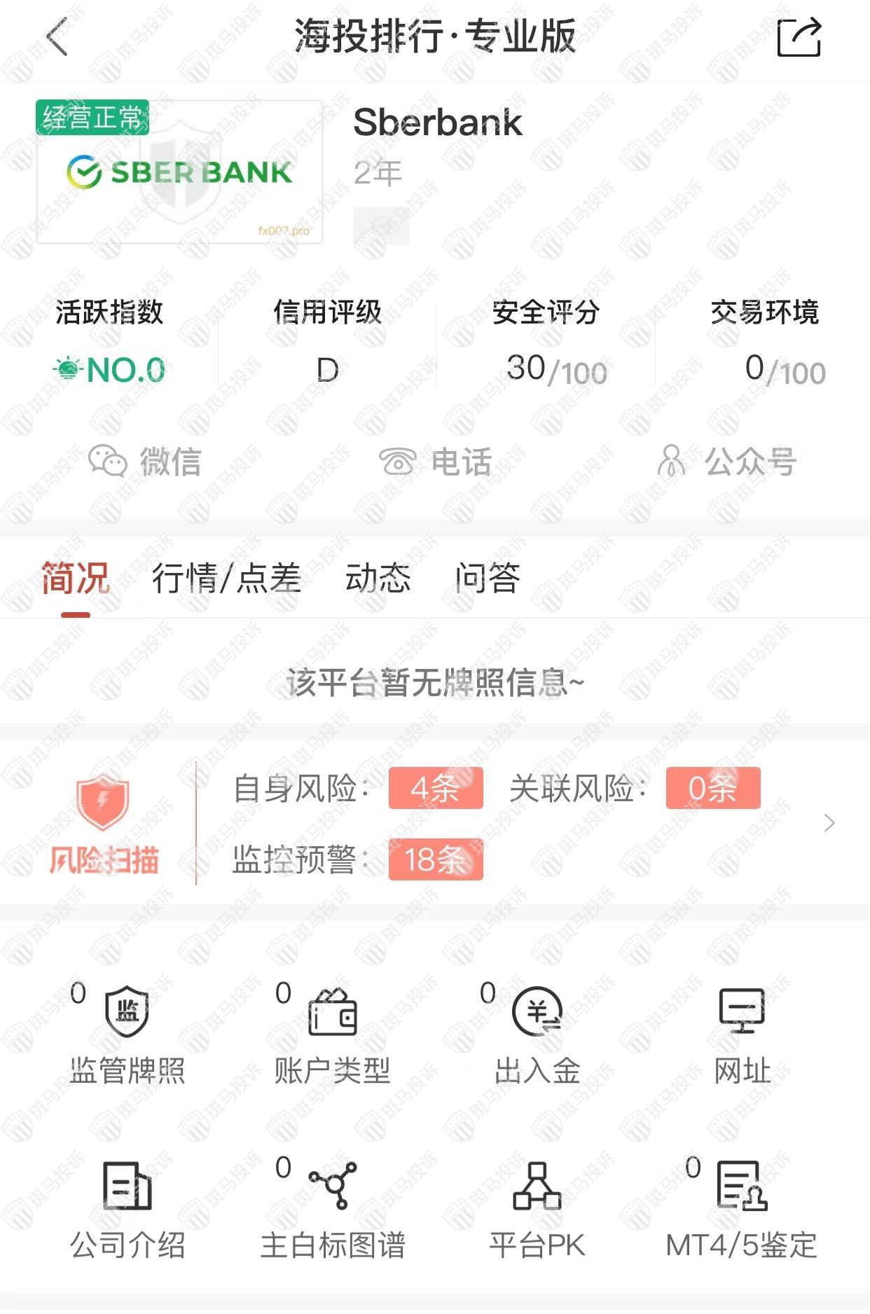 这家平台叫Sberbank,成立于2020年,无全球排名,目前无监管,但是没有外汇牌照,不能做外汇保证金交易,风险扫描显示22条风险,投资者资金安全无保障。