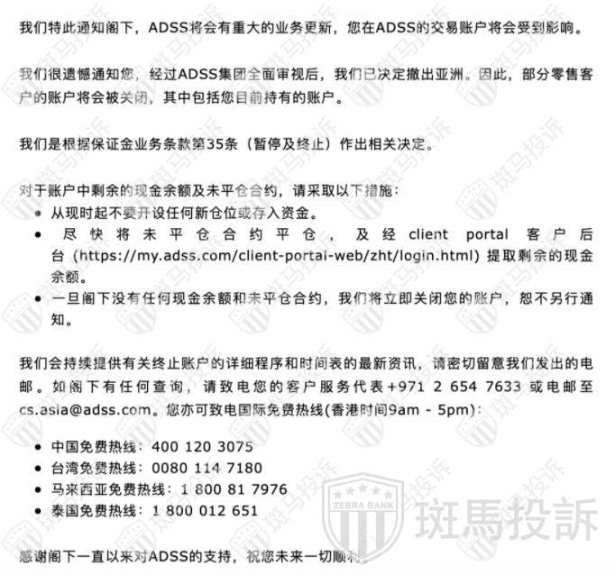 达汇ADSS宣布撤出亚洲市场