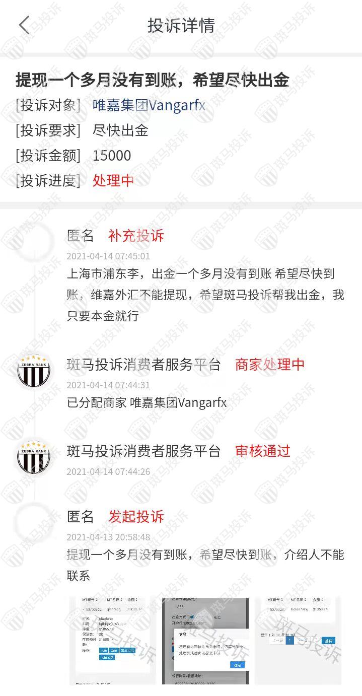 Kirin horse平台关联平台维嘉集团Vangarfx在斑马投诉未收到相关投诉。