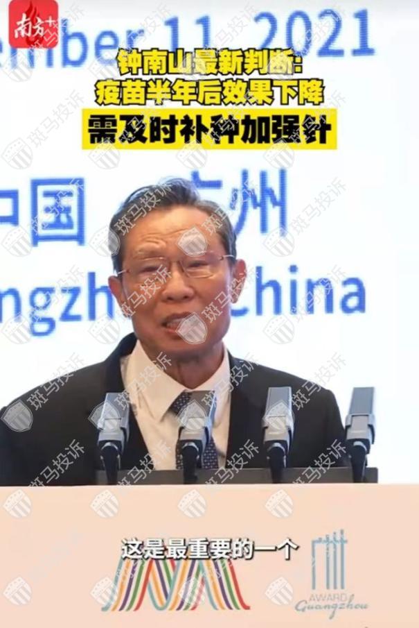 据北京日报报道,11月11日晚,在以“结伴同行,推动全球城市治理现代化”为主题的全球市长论坛全体大会上,中国工程院院士钟南山表示:“新冠疫苗两剂接种完了,还要补种第三剂,无论全病毒灭活疫苗或mRNA疫苗,一疗程后半年体液免疫功能均明显下降。”