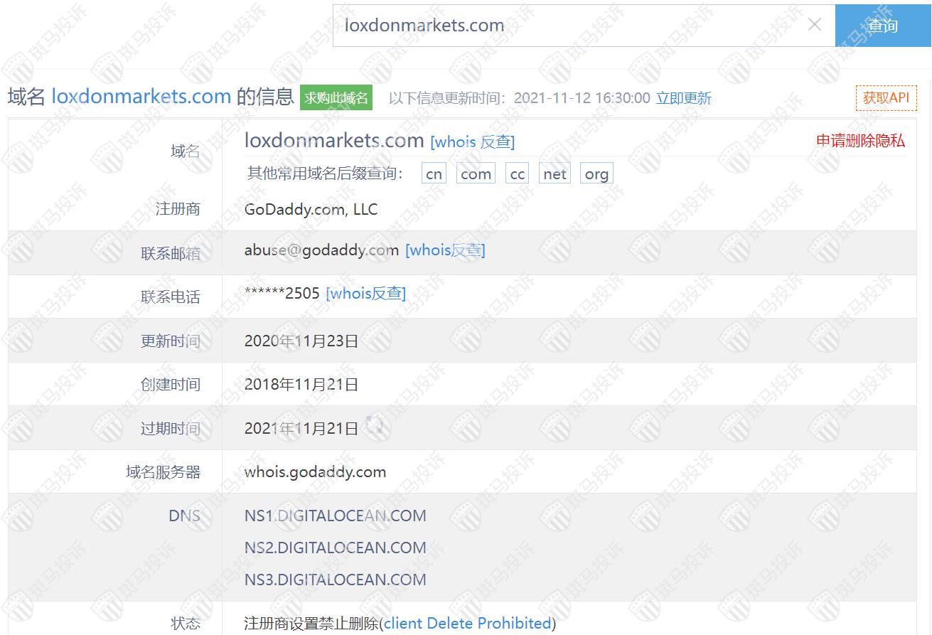 主白标关系显示Loxdon Markets平台和2家平台是一家公司,从他们的服务器地址,网站的模板来看,都可以看出来相似的地方。