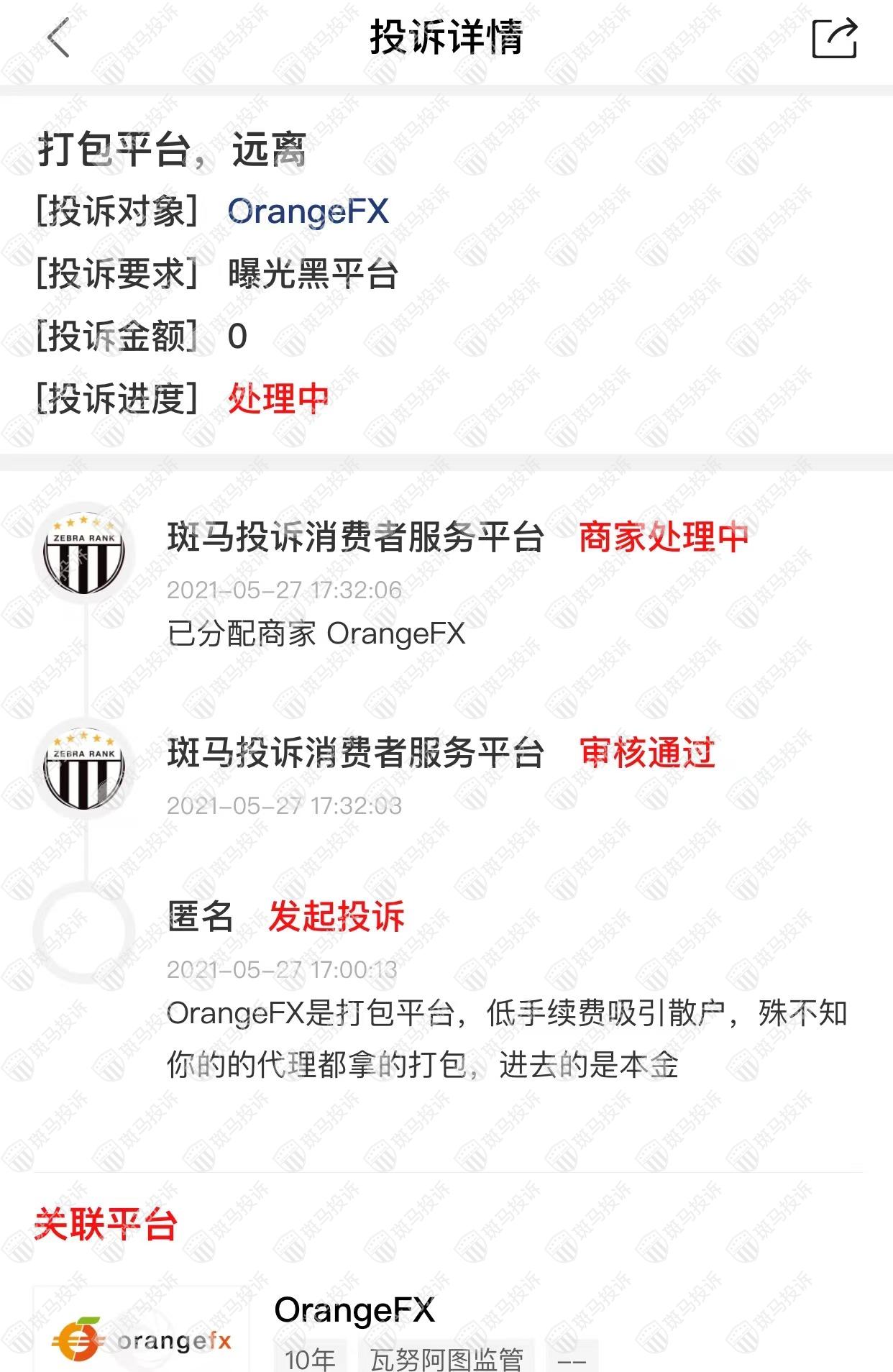 OrangeFX平台现在在斑马投诉有1条投诉,其中0条已处理。