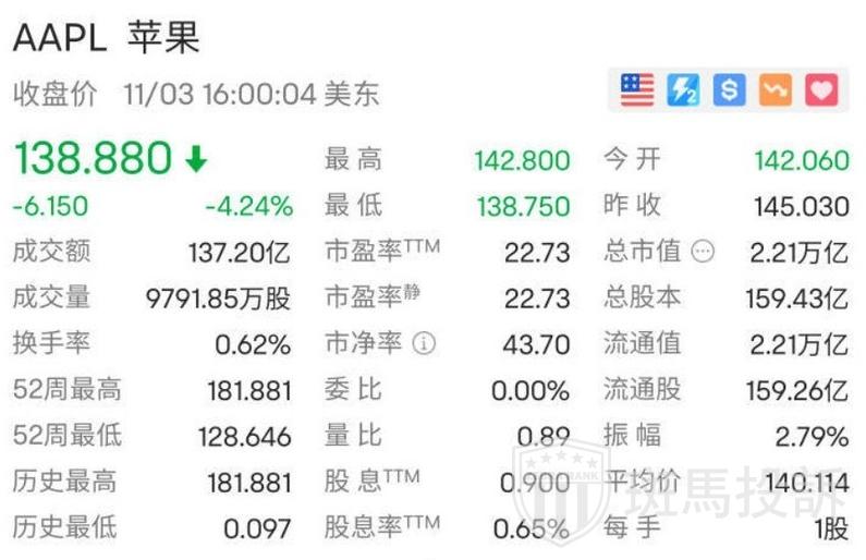 美股连续第四个交易日下跌,大型科技股再度领跌,谷歌跌4.07%,亚马逊跌3.06%,奈飞跌1.44%,微软跌2.66%。苹果跌4.24%,市值一夜蒸发977亿美元(约合人民币7160亿元)。