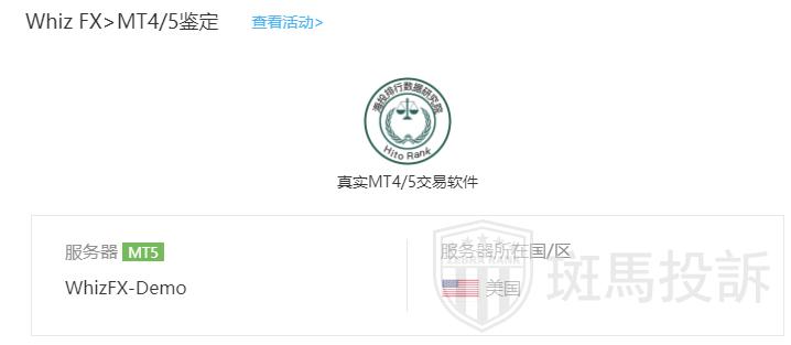 Whiz FX平台服务器有1台,在美国。