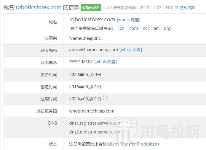 这家平台叫RoboticsForex,成立于2022年,目前没有监管,也没有外汇牌照,不能做外汇保证金交易,风险扫描显示1条风险,投资者资金安全无保障。