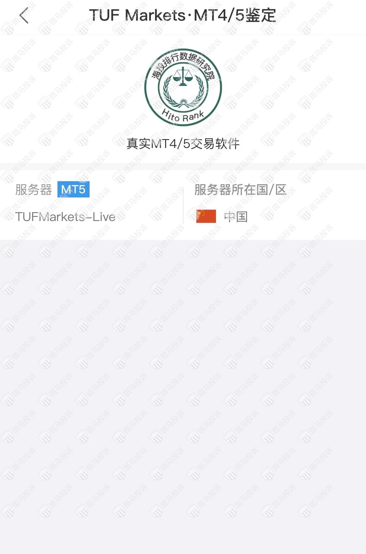 TUF Markets平台服务器有1台,在中国。