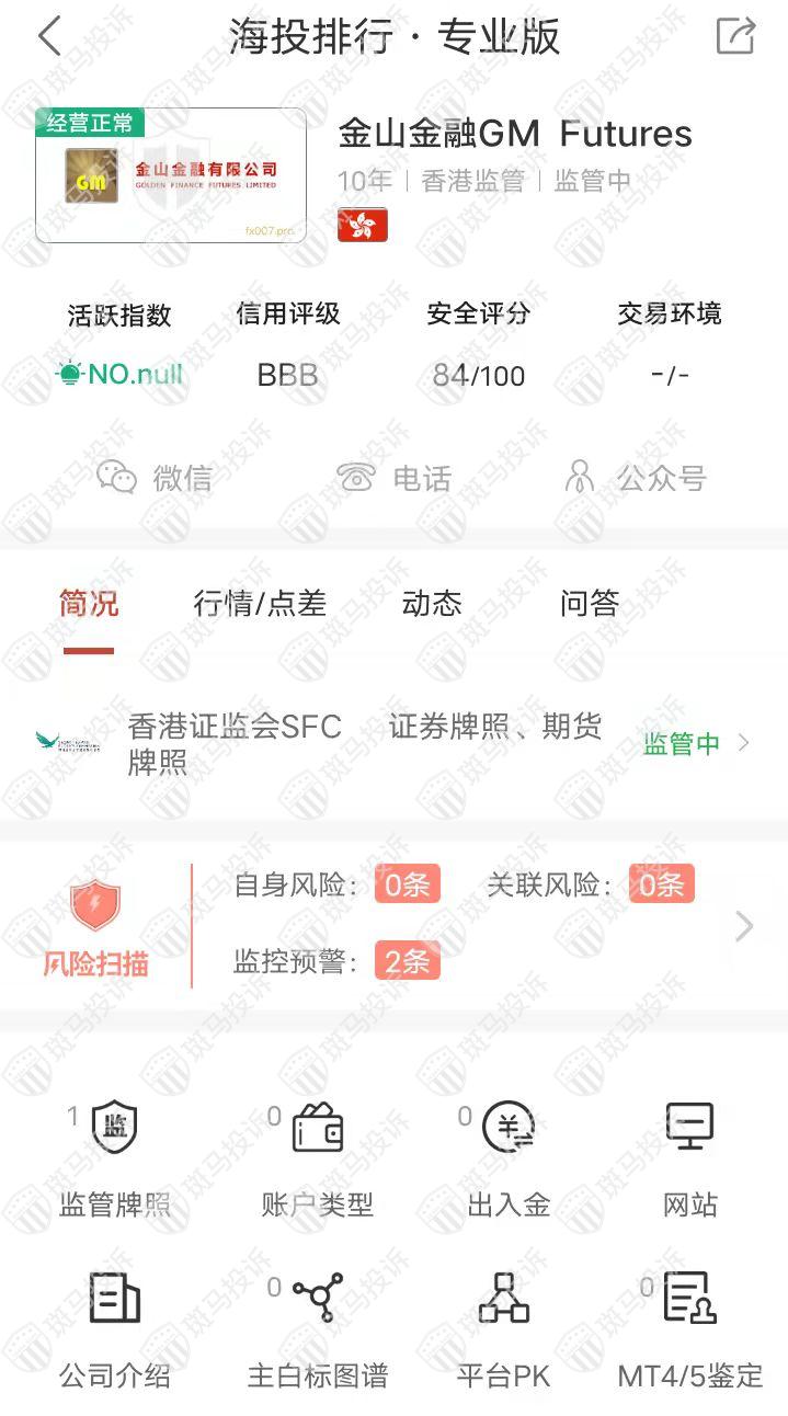 GM Futures金山金融平台目前在斑马投诉未收到相关投诉。