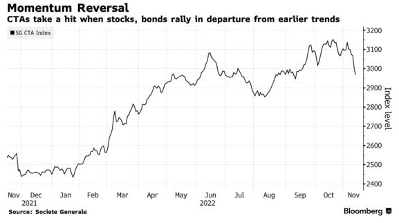 对大宗商品交易顾问公司(CTA)等跟踪趋势的基金来说,这种冲击尤其令人痛苦。上周消费者价格指数(CPI)涨幅低于预期。根据法国兴业(4.99,0.05,1.01%)银行的一项指数,该集团今年凭借通胀交易实现了两位数的增长,但目前却陷入了2020年3月以来最糟糕的表现。