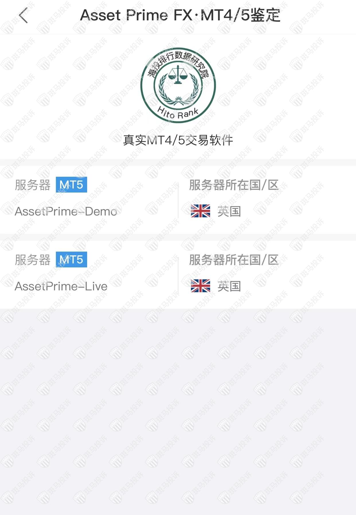 Asset Prime FX平台服务器有2台,在英国。