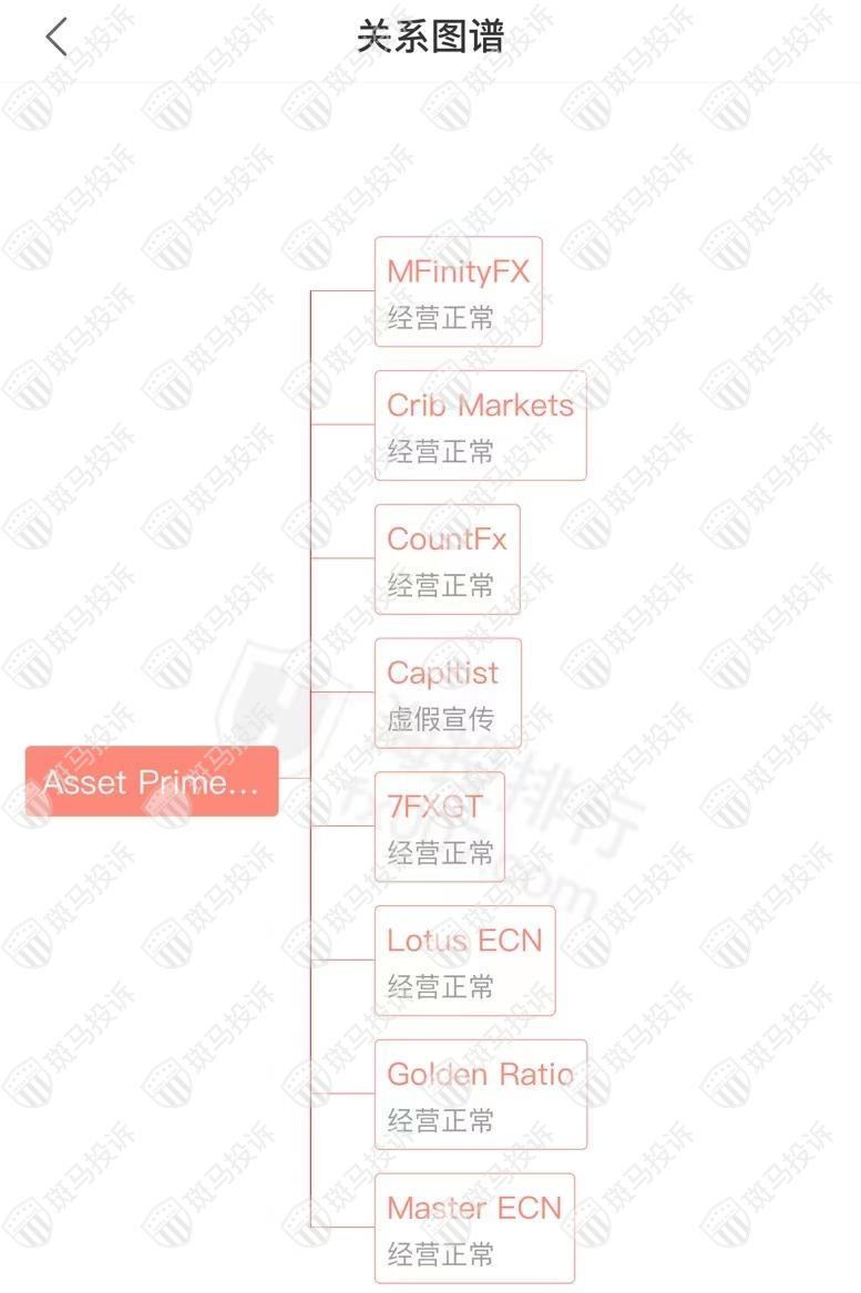 主白标关系显示,Asset Prime FX平台和8家平台存在关联,其中1家出现虚假宣传的情况。