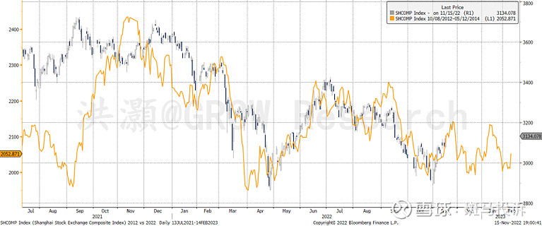 当下的境况与2014年初有诸多相似之处。譬如,这两个时期都见证了美联储大刀阔斧收紧货币政策和中国房地产市场的趔趄前行,而决策层最终伸出援手。这两个时期的市场走势亦重规叠矩。譬如,上证在2014年的前几个月间进退维谷。