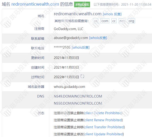 Redromanticwealth平台服务器有1台,在美国。
