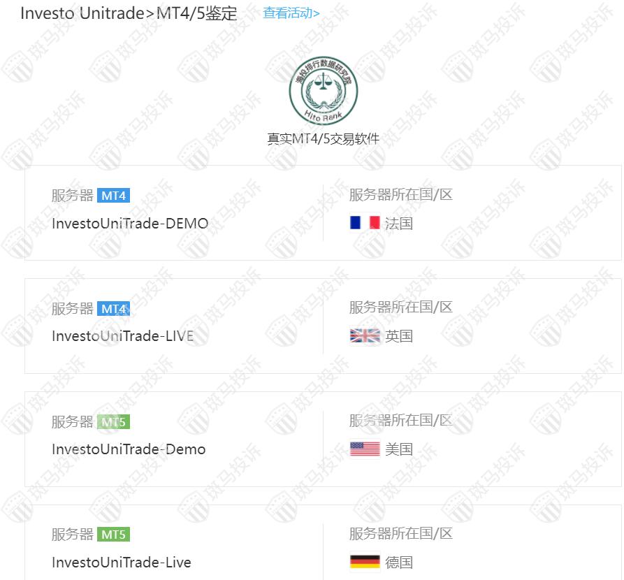 Investo Unitrade平台服务器4台,1台在德国,1台在美国,1台在英国,1台在法国。