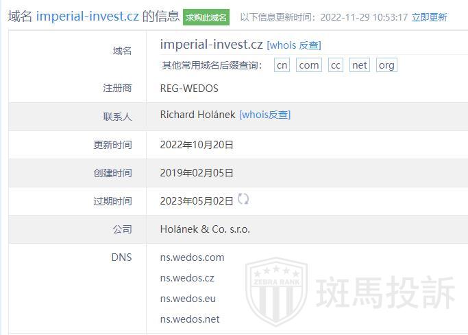 Imperial Invest平台服务器有1台,在英国。
