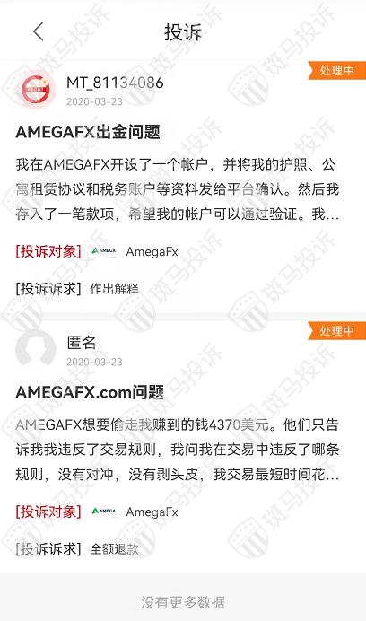 AmegaFx平台现在在斑马投诉有2条投诉,均在处理中。