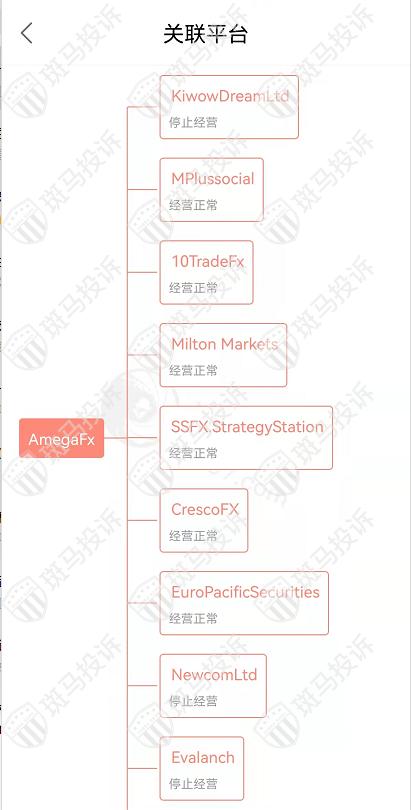 主白标关系显示,AmegaFx平台与23家平台存在关联性,和停止经营的平台NewcomLtd平台是一家公司,从他们的服务器地址,网站的模板来看,都可以看出来相似的地方。