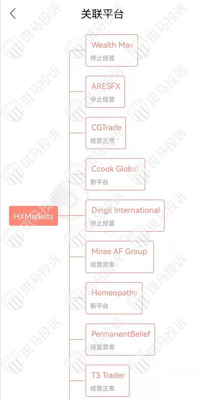 主白标关系显示,HXMarkets平台与62家平台存在关联性。和其中停止经营的平台Wealth Max平台是一家公司,从他们的服务器地址,网站的模板来看,都可以看出来相似的地方。