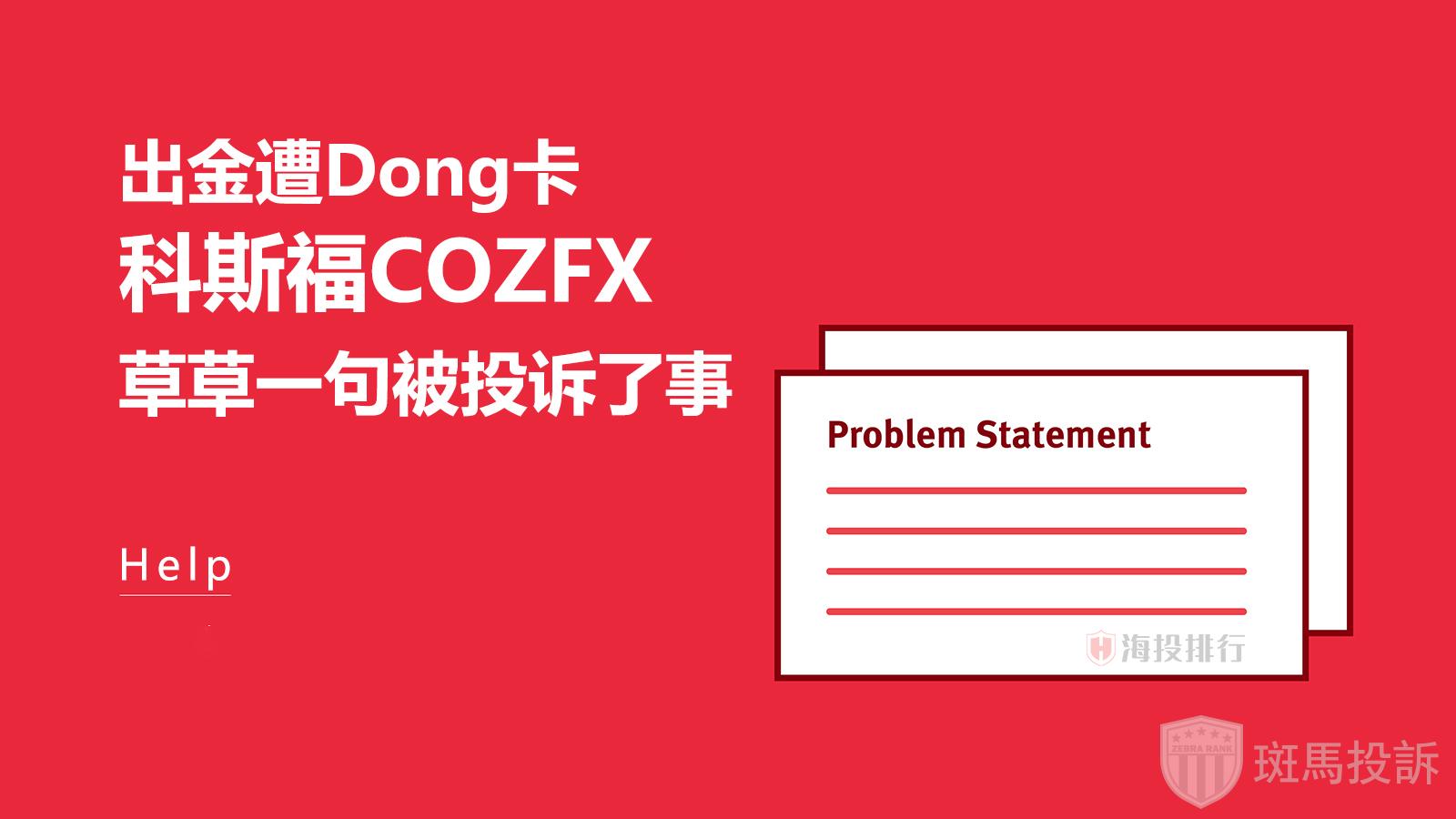 斑马投诉:科斯福COZFX客户出金遭冻卡