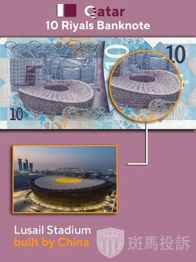 ↑卡塔尔面额10里亚尔纸币——卢赛尔球场