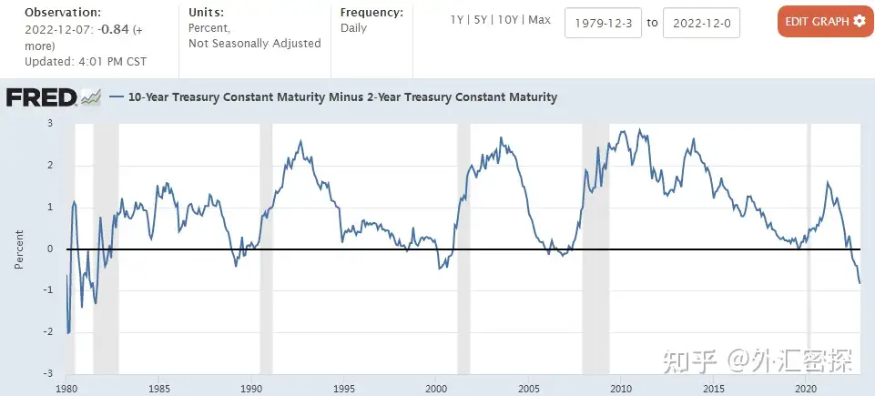 值得一提的是,自1957年以来的每一次美国经济衰退之前都会出现收益率曲线反转的现象。圣路易斯联储将此描述为“衰退的预测指标”,但也承认两者之间的关联并不完美。