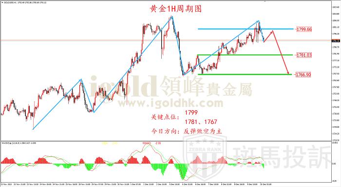 从1H周期走势结构看,黄金自1727.0附近上涨,在涨至1810.0附近后受阻,随后价格大跌,目前金价再次来到前期高点附近,需留意在此位置形成“M顶”。结合MACD指标来看,金价在涨至1810.0附近时,1H周期MACD指标发出背离信号,趋势有反转可能,目前的上涨走势可看做下跌途中的反弹行情,日内操作可在1799.0附近尝试空单。