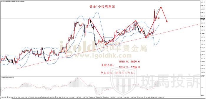 隔夜公布的美国11月未季调CPI年率为7.1%,低于预测值的7.3%及前值的7.7%,为11个月来最小涨幅。月率方面,美国11月消费者物价指数(CPI)较前月增长0.1%,连续第二个月低于预期,录得近一年来最小环比涨幅,因汽油和医疗保健以及二手车和卡车成本下降。核心CPI环比增长0.2%,为2021年8月以来最小涨幅。通胀数据如预期回落,使得市场进一步押注美联储将缩减加息规模,美元指数大幅走低,金价于属于公布时瞬间上穿1800水平,隔夜最高录得1824高点。