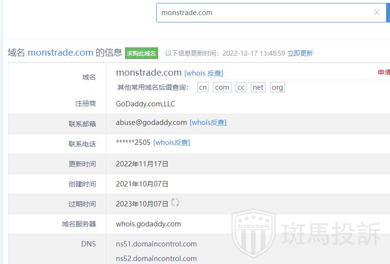 Monstrade平台目前在斑马投诉未收到相关投诉。