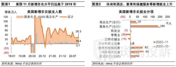 从就业数据来看,美国工人薪资增长强劲。美国11月平均每小时工资年率升至5.1%,高于预期。强劲的薪资增长无疑是提振了美国服务业消费需求。而且11月非农就业报告显示,服务业中,休闲和酒店业和保健服务等部分新增就业进一步上升,显示出服务业劳动力需求仍然强劲,服务业景气度尚未恶化。