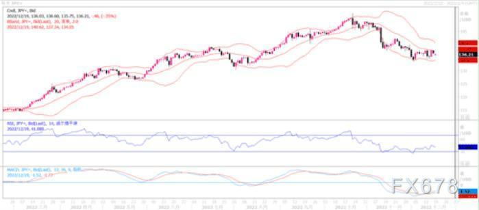 上周五(12月16日),美元兑日元高位遇阻回落,日跌幅0.76%,日低去抵136.29,收盘于136.72。因为在本周,日本央行将召开今年最后一次利率决议。对于日银货币政策,日本央行前副行长YAMAGUCHI发表讲话称,如果日本经济能够抵御海外经济风险,日本央行必须准备好明年调整收益率曲线控制。这有可能代表说日本央行此次会议上会就明年进行政策评估给出些信息出来。为此,在会议之前,日元颇有传闻前买入的味道。从日线图上观察,美元兑日元继续维持一种区间横盘震荡的形态,波动区间主要集中于135-138之间,技术指标也呈中性,指向不明朗。暂时还是难以期盼该货币对走出明显的趋向性交易路径。继续保持区间横盘震荡走势来对待该货币对的交易处理。