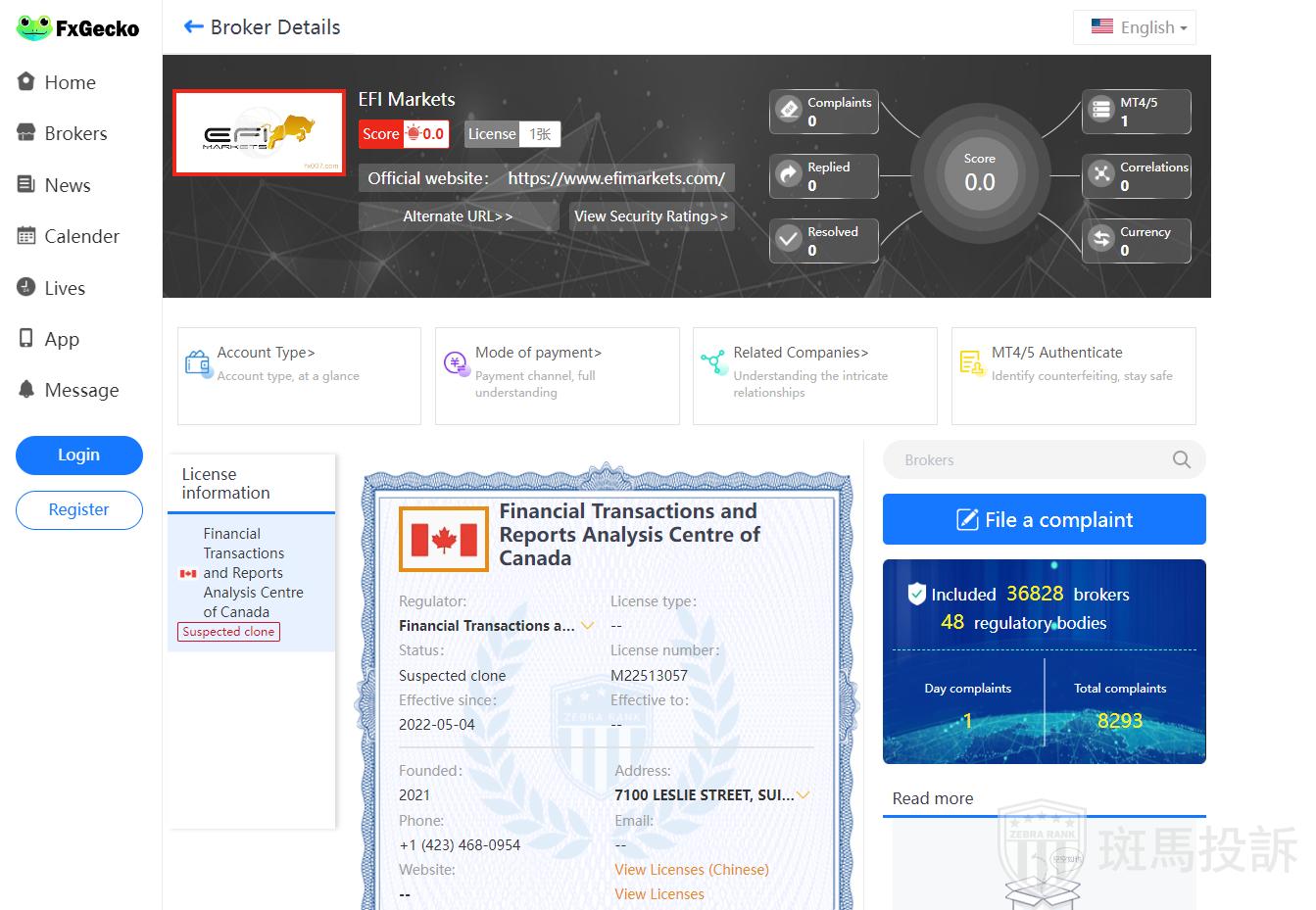 EFI Markets has not received the complaint information in FxGecko yet.