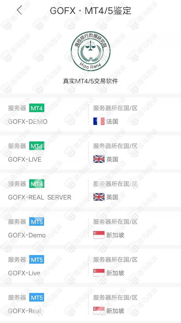 GOFX平台服务器有6台,分别在法国、英国和新加坡。