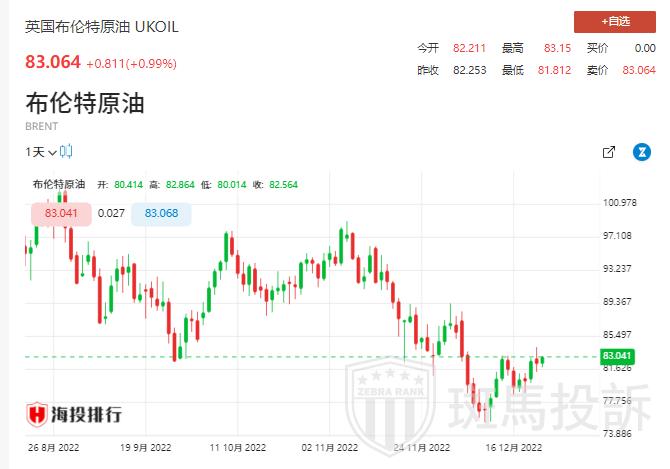 北京时间12月23日14:20,布伦特原油主力合约价格报82.19美元/桶。