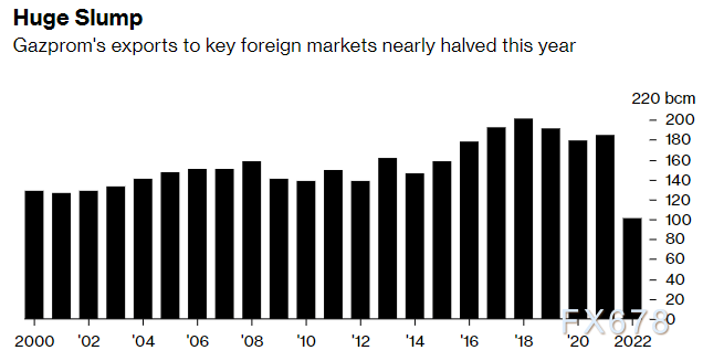 财联社12月29日讯 根据俄罗斯天然气工业股份公司周三公布的最新数据,俄罗斯今年对非独联体国家的管道天然气出口量骤降几乎“腰斩”,创下了至少本世纪以来的最低水平,因在俄乌冲突爆发后运往欧洲的天然气流量锐减,且最为关键的北溪天然气管道遭遇了爆炸破坏。