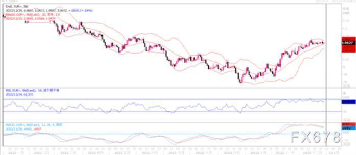周三(12月28日),欧元对美元继续窄幅交投,汇价整体上维持在1.06之上。欧洲央行副行长路易斯.德金多斯日前表示,欧元区面临“非常困难的经济形势”。他强调,在明年第二季度经济重新开始增长之前,欧元区正在经历一场“短暂而轻微的衰退”。尽管经济面临下行压力,但鉴于通胀仍然居高不下,欧洲央行也在继续紧缩的政策。德金多斯在被问及借贷成本上升到何种程度时重申了欧洲央行的说法,即这将“根据即将到来的数据,通过逐次会议”来决定。欧洲央行一众官员在加息上的坚定态度,是近期支撑欧元的基础。从技术层面上看,尽管震荡指标并未显示欧元兑美元多头产生明显优势,但由50期均线和11月下旬以来的向上倾斜趋势线组成的1.06支撑汇合点看似支撑还是比较牢靠。但是上方近期的初步阻力1.0670一直未能有所突破,只有彻底突破,或方能吸引欧元多头的大胆入场。相反,若果汇价跌落1.03之下,则欧元兑美元恐帕再陷入下行之中。