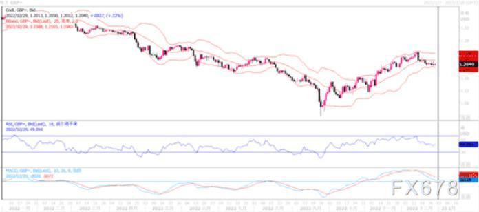 周三(12月28日),英镑兑美元继续勉强守护在1.20上方,全日最后收盘于1.2020附近。近期,世界各主要大国相继宣布将不再公布新冠病毒感染数据,防疫进入与病毒共存的新阶段。值得注意的是,围绕新冠病毒的积极新闻头条再次引发了鹰派对美联储的担忧,并在近期又推高了美国国债收益率,这也帮助美元指数近期得以在下滑中守住在了近期的低点104附近。美元的回稳,也就造就了英镑的下跌。从日线图上观察,在1.2000心理关口附近,英镑兑美元似乎暂时抑制了英镑兑美元的下行,随机指标KDJ出现交叉,MACD绿色动能柱似乎在收敛,说明英镑的空头意愿并不是太强烈。继续密切关注1.20-1.18区域的支撑性,若最终跌穿该 价格区域,则英镑弱势尽显。相反,若能撑持在上述区域,后市反弹可期。