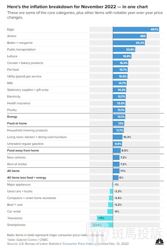与去年同期相比,11月份鸡蛋的平均价格上涨了49.1%,根据衡量通胀的消费者价格指数(CPI),这是同期所有食品杂货中同比涨幅最大的。相比之下,占主导地位的“家庭食品”类别上涨了12%。