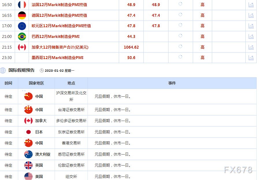 北京时间周一(1月2日),本周美联储将公布12月货币政策会议纪要,美联储布拉德发表讲话,从中寻求美联储货币政策的走向;日内因新年假期,交投或清淡,关注欧元区12月Markit制造业PMI终值。