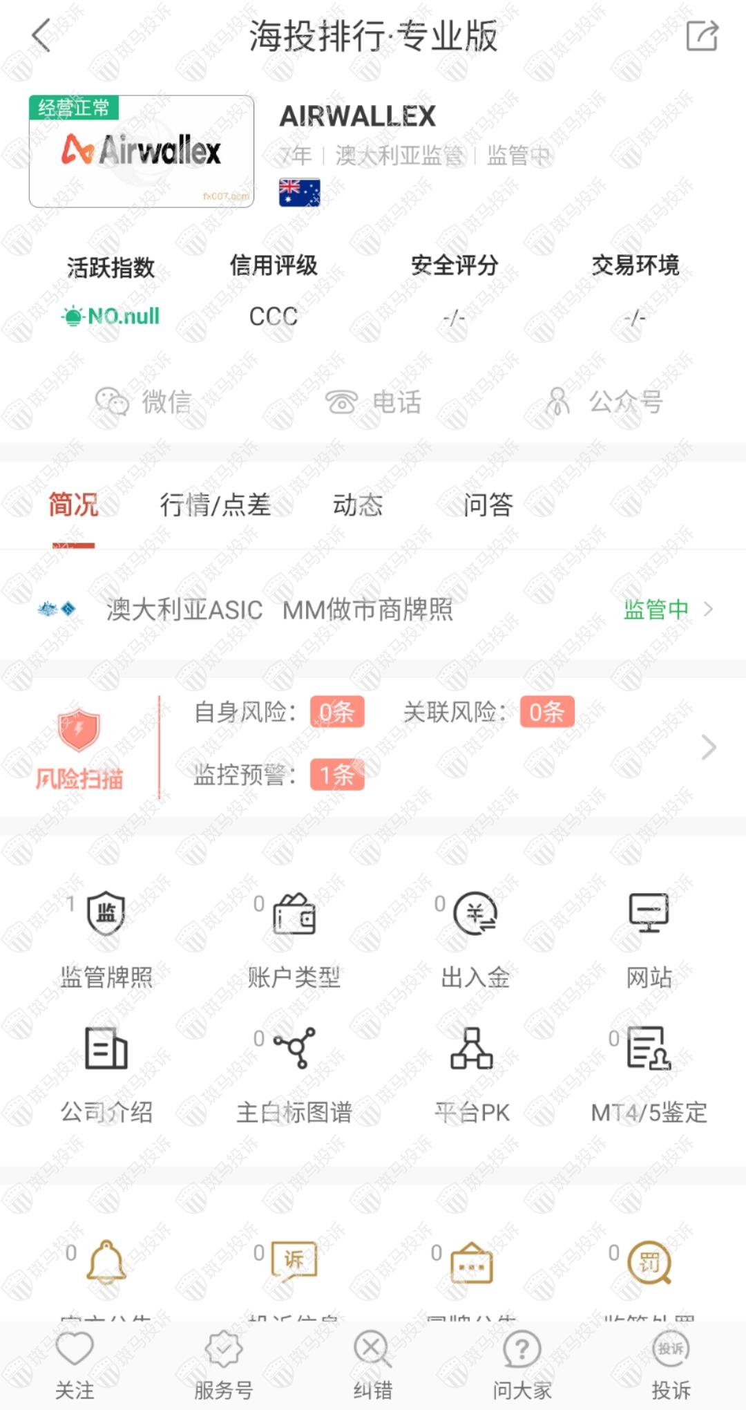AIRWALLEX平台在斑马投诉暂未收到投诉信息。