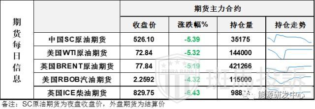 【1】WTI主力原油期货收跌2.22美元,跌幅5.32%,报72.84美元/桶;布伦特主力原油期货收跌4.26美元,跌幅5.19%,报77.84美元/桶;INE原油期货收跌5.39%,报526.1元。