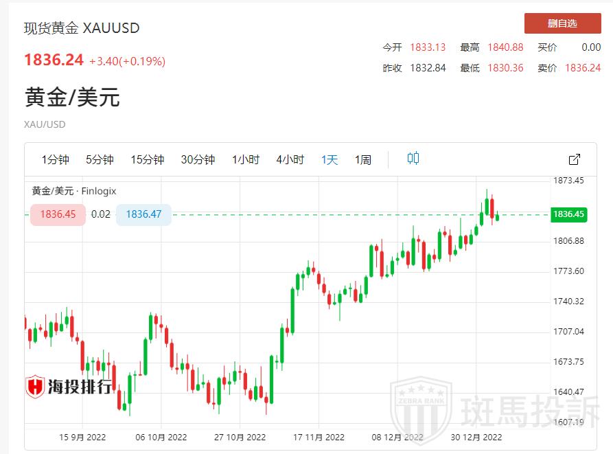 周五(1月6日)亚洲时段,现货黄金震荡上涨,逢低买盘和技术面超跌反弹需求给金价提供支撑,目前交投于1836.65美元/盎司附近。多位美联储官员倾向于进一步加息且较长时间维持较高利率以达成2%的通胀目标,ADP和初请失业金人数等就业数据也给美联储进一步加息提供数据支撑,美元指数短线初步见底并偏向进一步震荡上行,这对金价不利。