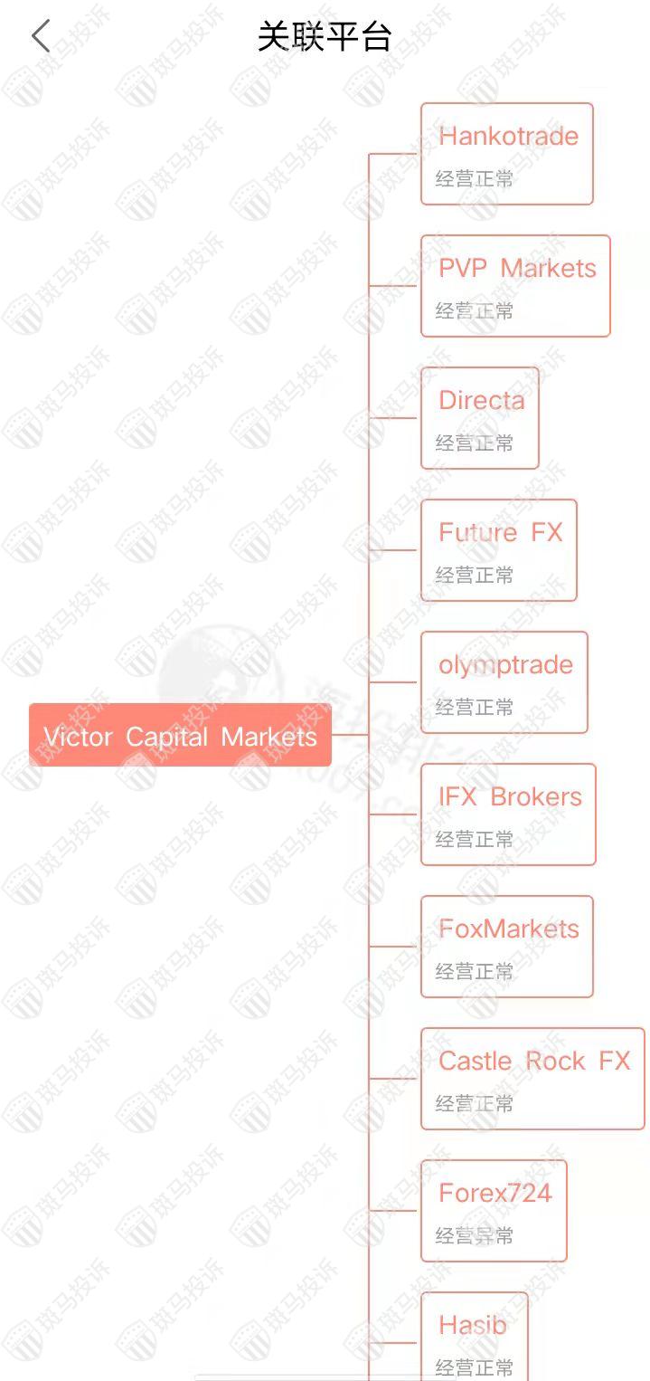 主白标关系显示,Victor Capital Markets平台和36家平台存在关联,其中有两家已停止经营。