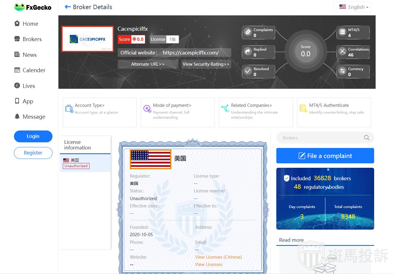 This broker is called Cacespiciffx, which has been established for one year and ranks 2925 in the world. At present, there is no foreign exchange license,and the risk scan shows 93 risks.Investors need to pay attention to relevant risks.